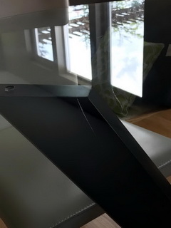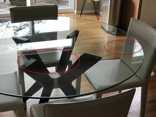 We bought this $1300 glass table on 4/01/2017 from Thomasville of Bellevue, but just received it a little over a week ago on 5/4/2017. We picked it up ourselves from the warehouse, and had them open it. We did not immediately find any scratches or damage on the piece at that time. We brought the piece home, and assembled it in our kitchen eating area, and immediately proceeded to wipe the table down using Windex and a soft paper towel, but subsequently have only used microfiber cloths to clean the table. We noticed almost immediately on the first day that there were some deep scratches that showed up. We are typically very careful with our furniture, and would never use any harsh abrasives on it, but it seems that through very careful light use and cleaning, some troubling deep scratches were appearing on this table.