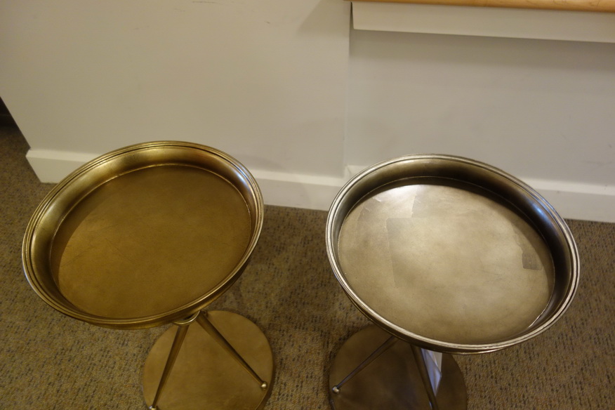 Attached are pictures of the Spellbound Metal Chairside table. The table on the left is the new table that I received. The table on the right is the table that's the floor model at the Thomasville store that I thought I would receive. It's apparent that the two table finishes are completely different colors. The store manager, was not willing to allow me to return the table, order a new one or give me any discount for exchanging the new table with the floor model. This was also the response from the customer service department in North Carolina.