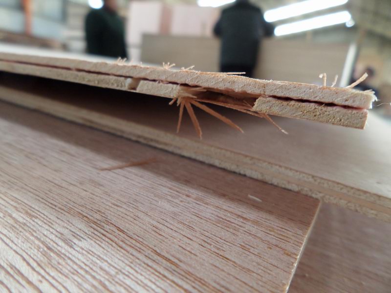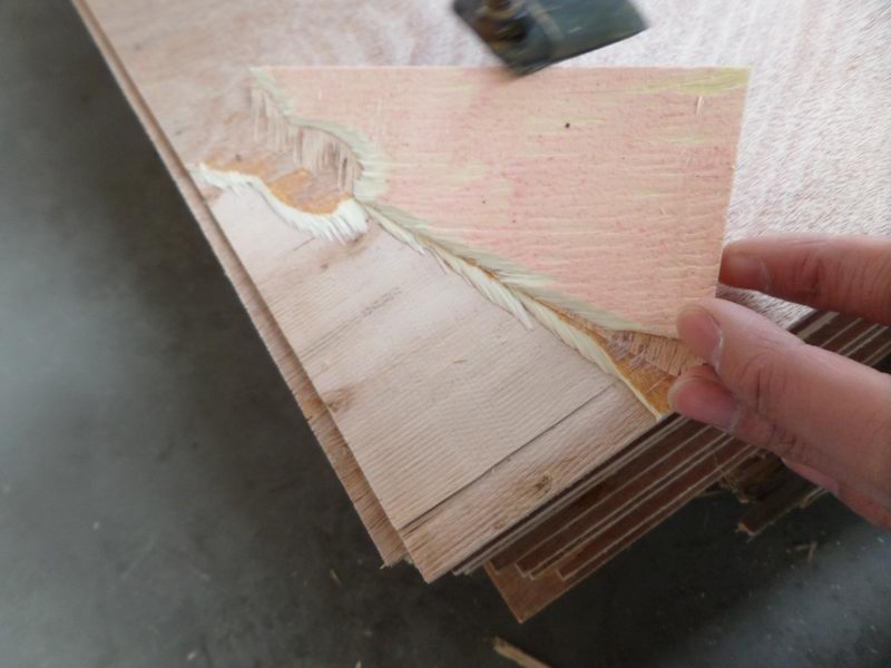 If the failure of the slab is entirely in the glue layer, it ban be regarded as glue opening. The reason for this kinds of defects are that pressure drop is too fast and hot pressing time is insufficient, the moisture content of veneer is too high or the amount of glue applied is too large, there are blank spots or inclusion on the veneer during glue application, sticking stains.
